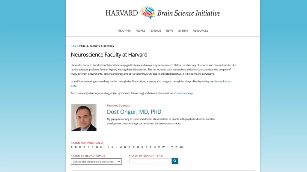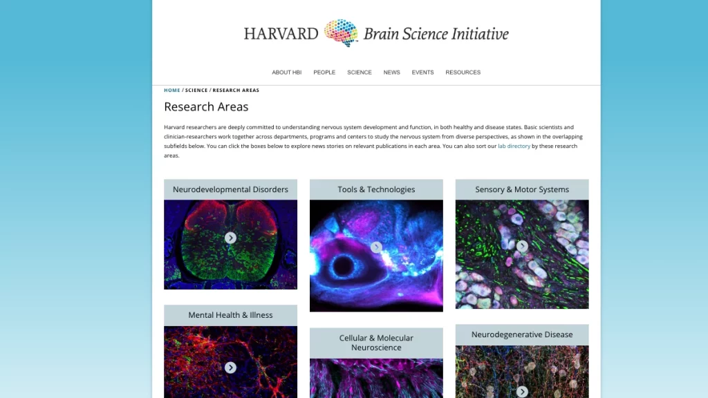 The Harvard Brain Science Initiative is an academic and research collaboration designed to strengthen connections among neuroscientists across Harvard University and the Harvard Medical School community. Established in 2014, it acts as a hub that links faculty, postdoctoral researchers, students, and affiliated hospitals under a shared mission to advance brain science. The site serves as both an internal resource and a public facing platform, hosting directories of researchers and labs, announcements of funding programs and awards, updates on scientific discoveries, educational events and symposia, and outreach features such as the Connectome, the initiative’s community directory of members. It is intended to foster interdisciplinary work while increasing visibility for the breadth and depth of neuroscience across Harvard.