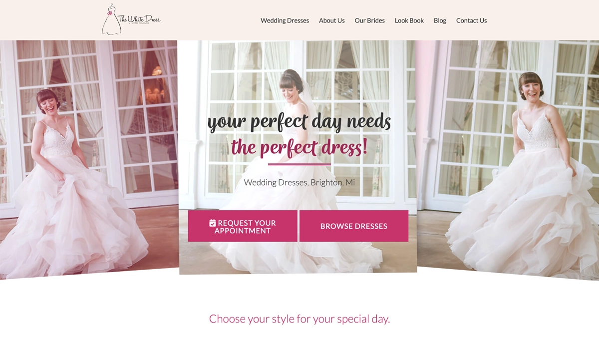 The White Dress is a Michigan-based bridal boutique that focuses on making the wedding dress experience feel special from the very beginning. They hand select gowns so that only beautiful, stylish dresses make it into the showroom. The boutique keeps the layout open and simple, with no crowded racks or hidden styles. The staff are called Style Experts, and they care about helping each bride find a dress she truly loves. Private fitting rooms, refreshments, and a comfortable setting are all part of the experience. The boutique has been widely recognized in the bridal industry, including being named a “Best of Weddings” winner on The Knot thirteen times.